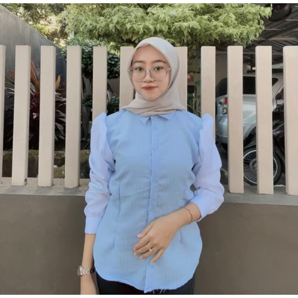 Kemeja Fitted Wanita Stripe Salur Basic Casual Maroon