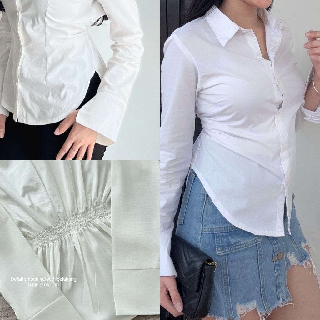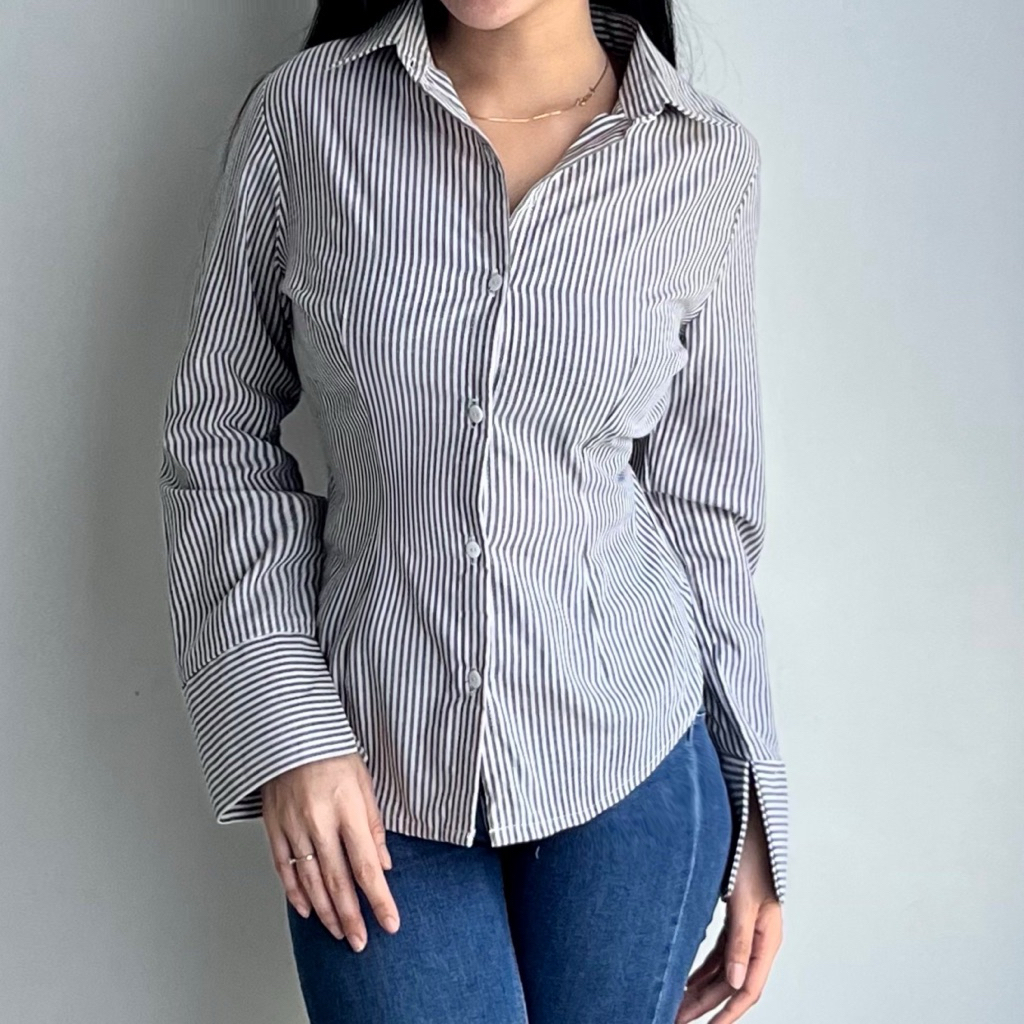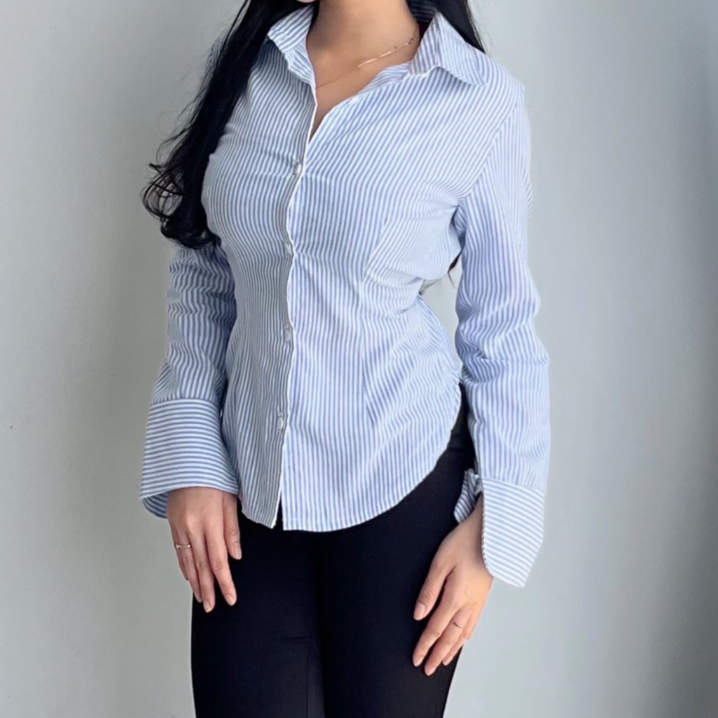 Disa top by Landzie Kemeja Wispie | Shirt Wanita Ngantor | Atasan Wanita Kemeja | Kemeja Kerja Wanita Press Body Pinstri