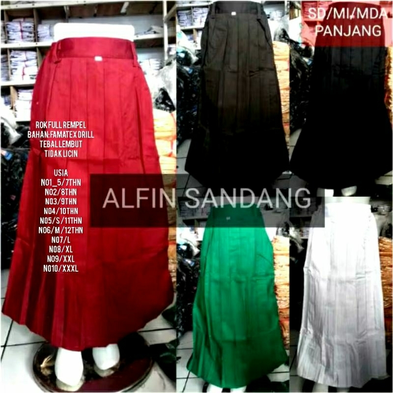 seragam sekolah Rok SD Panjang Kelas 1/2/3/4/5/6 rempel polos merah dan hijau maxi plisket prisket
