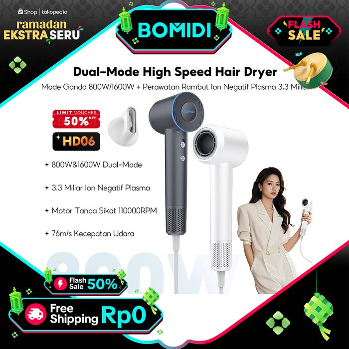 NEW BOMIDI HD06 800W & 1600W Dual-Mode High Speed Hair Dryer 3,3 Miliar Pengering Rambut Ion Negatif