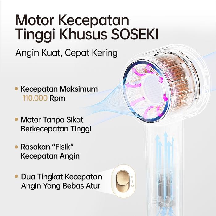 SOSEKI Hcare Hair Dryer Low Watt 520W/Pengeringan Cepat Hairdryer/5 Miliar ion Negatif hedrayer