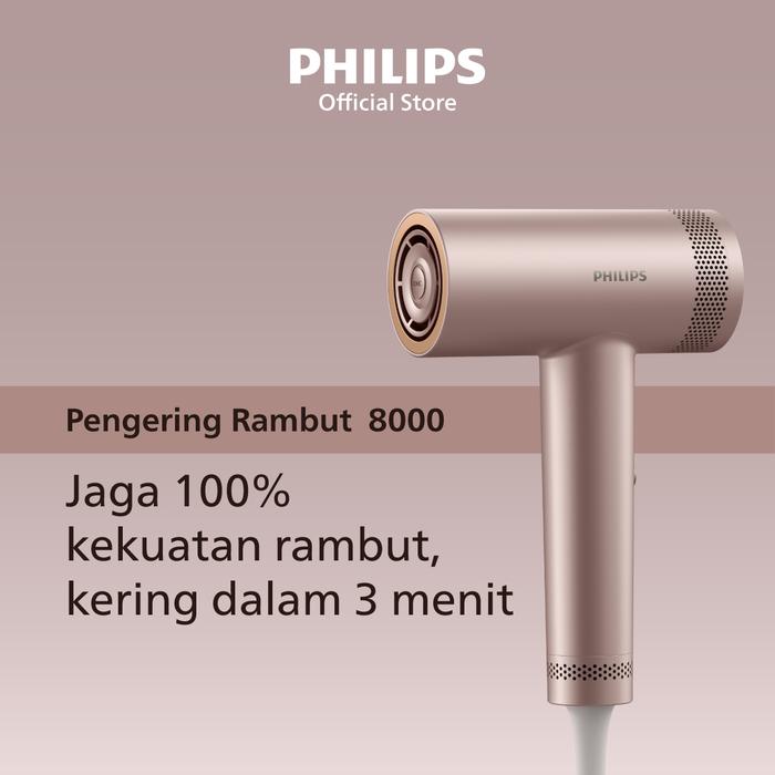 Philips Hair Dryer 8000 BLDC Pengering Rambut Jaga 100% kekuatan rambut, kering dalam 3 menit