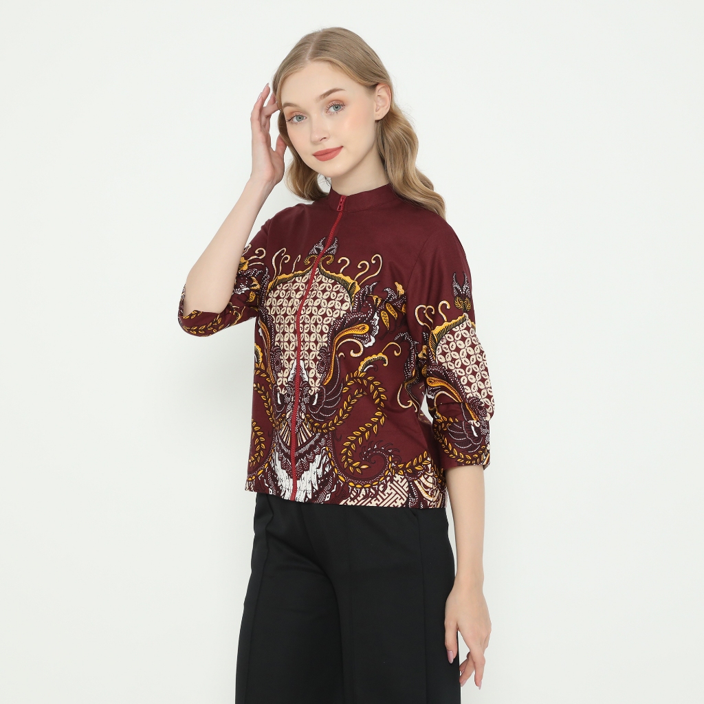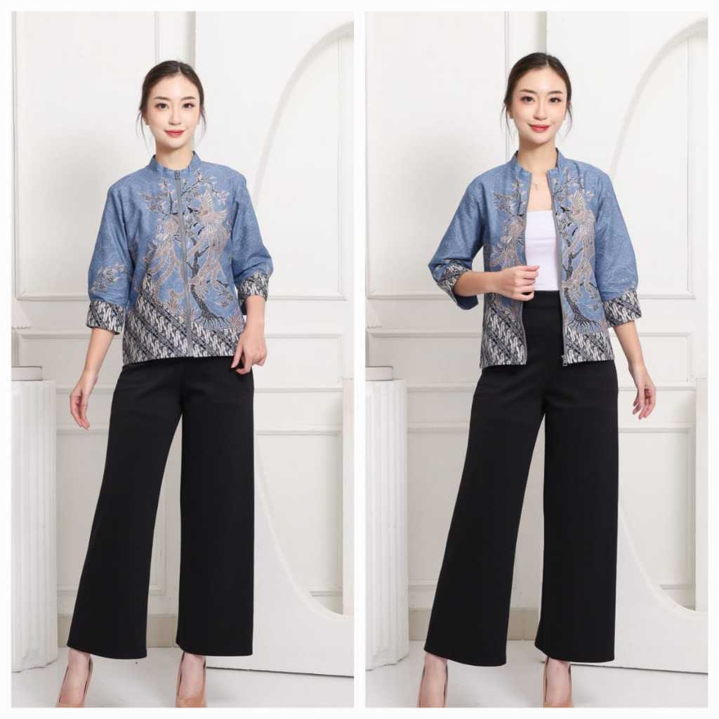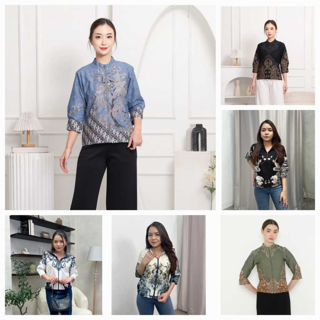 LUIGI RICCIO Jaket Batik Wanita Fashion Outer Zipper Look Size Standard Casual Kerja kantor