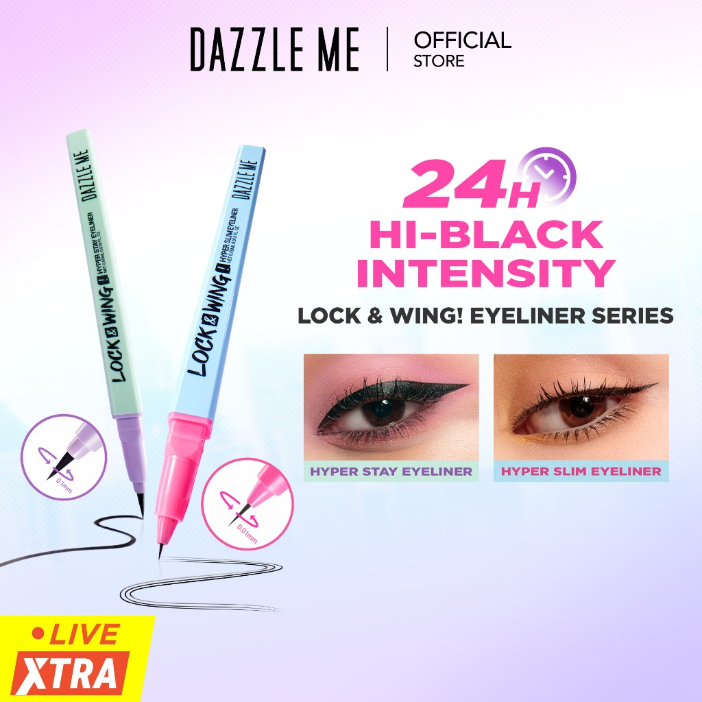 DAZZLE ME Lock & Wing! Duo Eyeliner Series Hyper Stay and Hyper Slim Smudgeproof Transferproof Waterproof Eyeliner