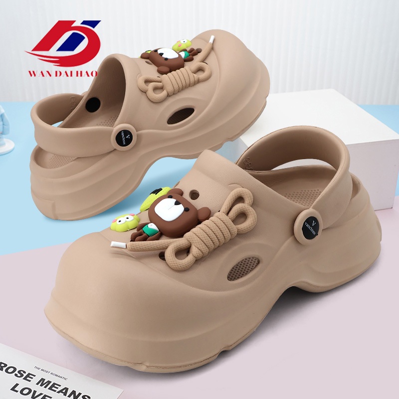 Wan Dai Hao Sandal Baim Wanita Korea Tinggi Sandal Kodok Wanita Kekinian Wedges EVA Slip on