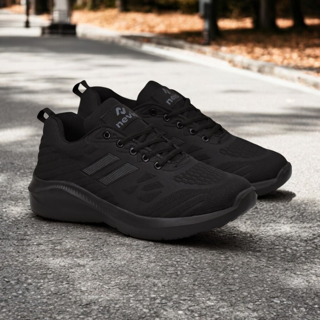 Sepatu Pria Jumbo Big Size 39-49 Nevis Hugo Full Black Hitam Polos Sport Running Sekolah Kerja Cowok