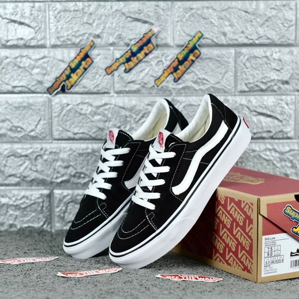 SEPATU PRIA SNEAKER VANS SK8 LOW BLACK WHITE ORIGINAL BNIB