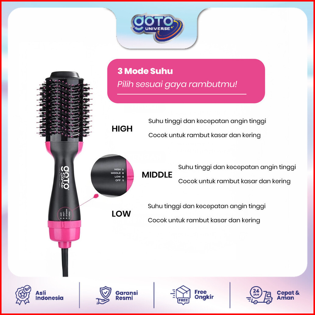 Goto Sirlo Sisir Blow Pelurus Curly Pengering Rambut 3in1 Elektrik