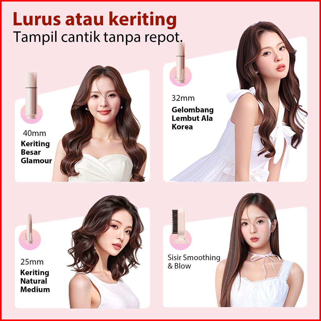 Sayomi 4 In 1 Hair Styler Catokan Keriting Otomatis Pelurus Rambut Sisir Blow With Ion Negative