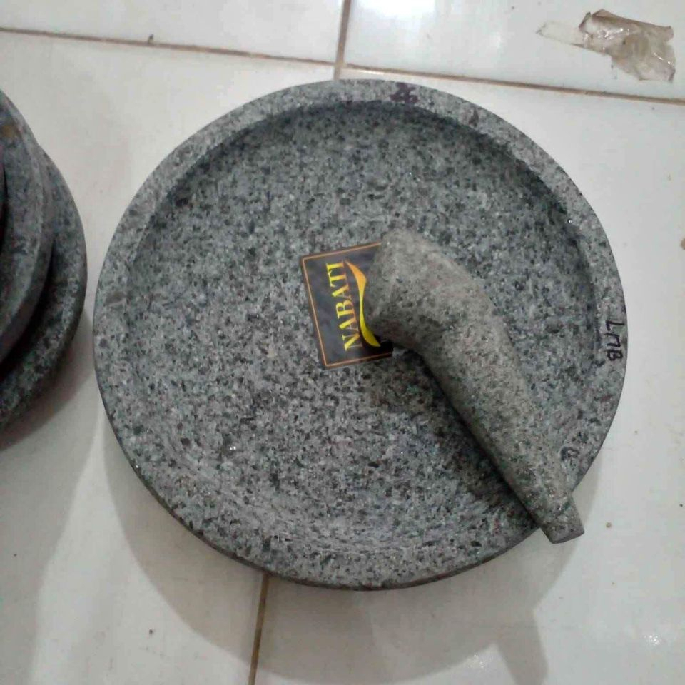 Cobek Batu Asli + Ulekan Cobek Uleg Makanan Dapur Cabai Sambal Gado BATAM