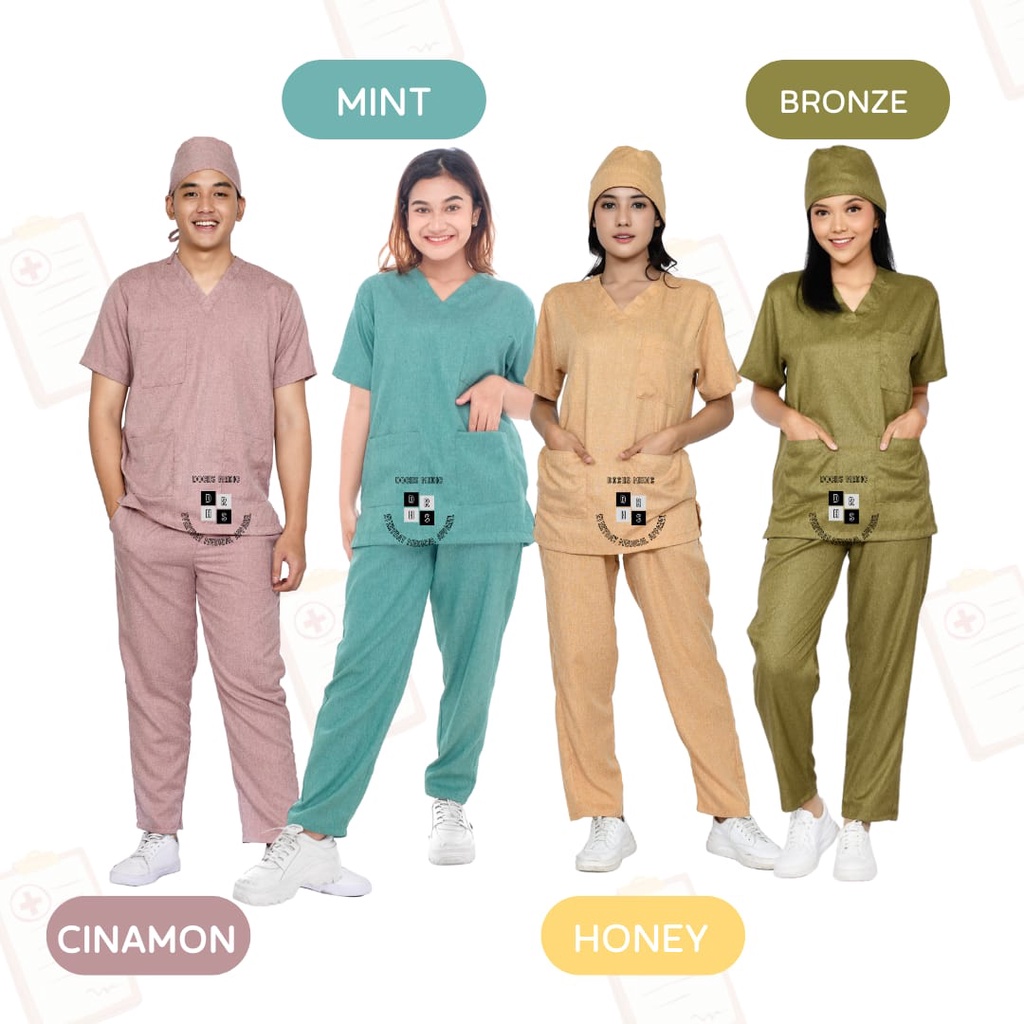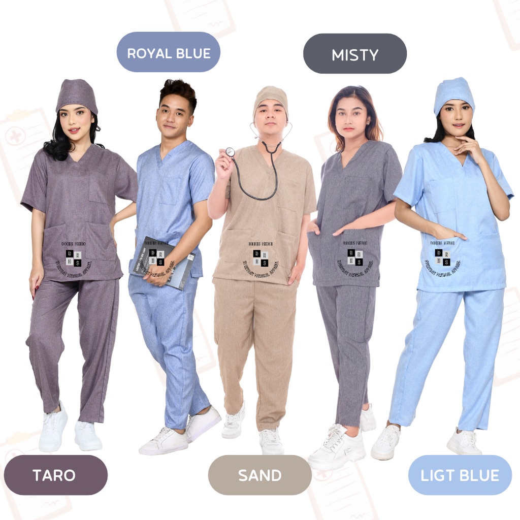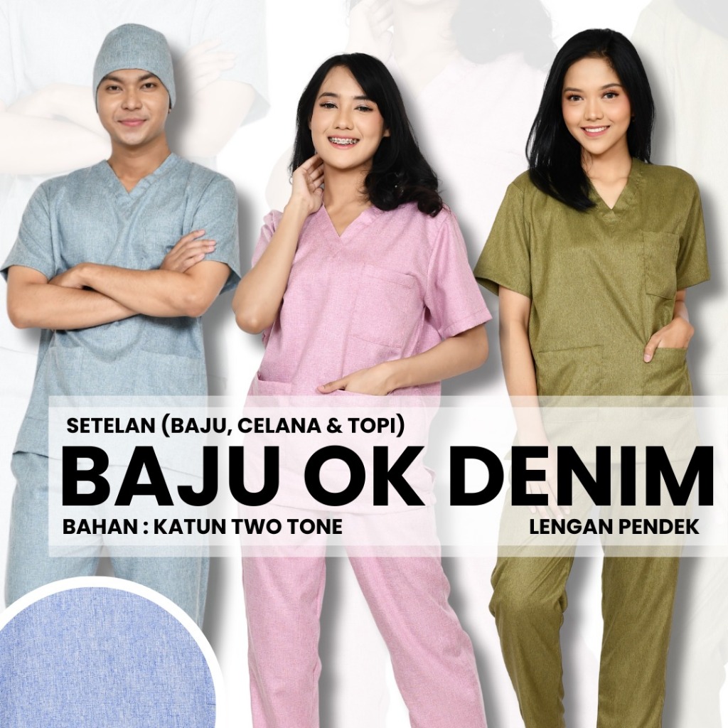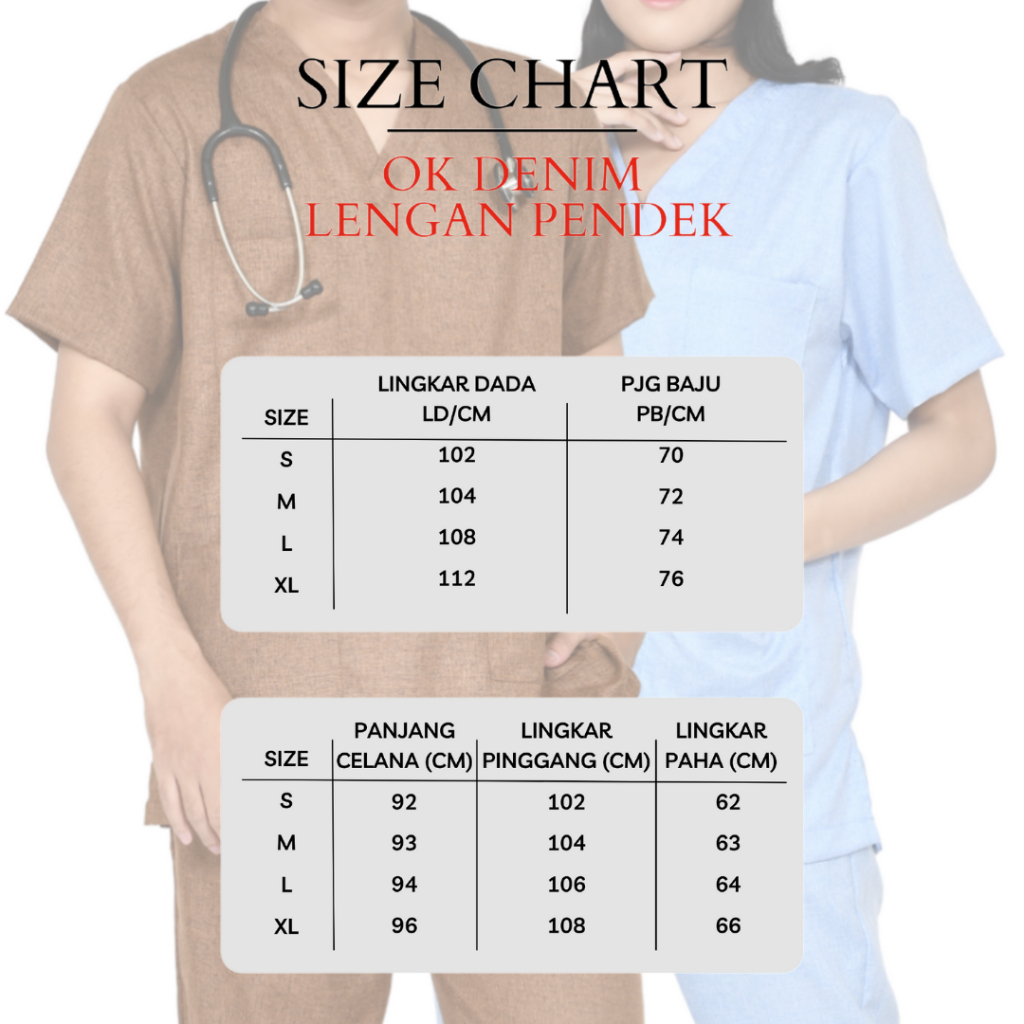 Baju OK DENIM / Baju Jaga / Scrub Medis DENIM Lengan Pendek DOCHS MEDIC