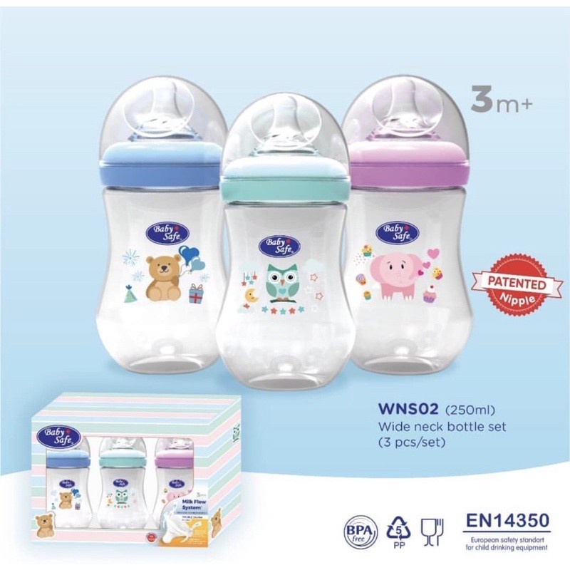 Botol Susu Baby Safe Wide Neck Bottle Isi 3 WNS01 125ml | WNS02 250ml