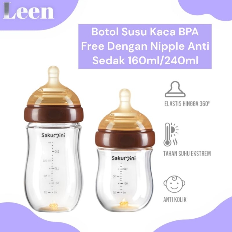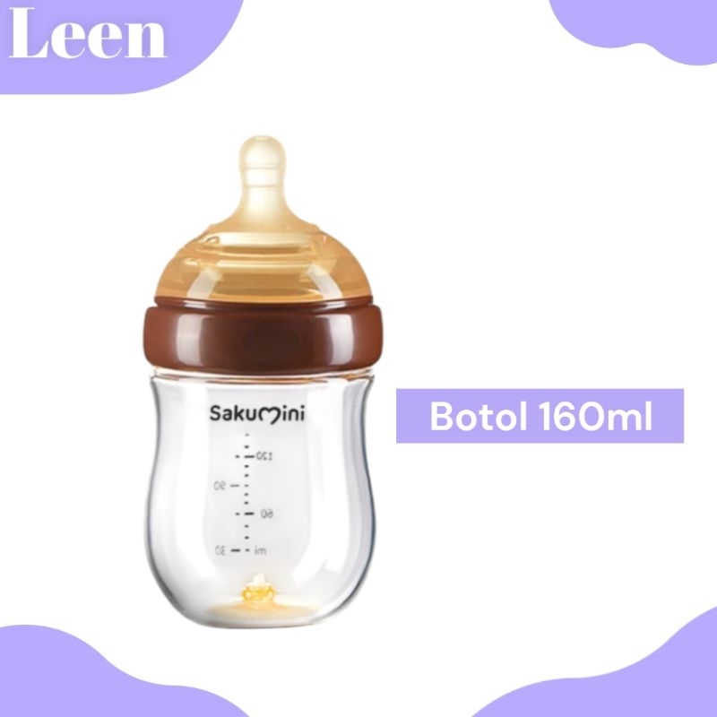 Botol Susu Natural Kaca Sakumini Dengan Nipple Anti Sedak/Sakumini Bottle Class Baby 160Ml/240Ml