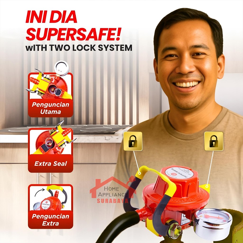 SUPER SAFE Regulator Meter Gas LPG Tekanan Rendah Double Lock - Kunci Ganda FAD SS-88R / SS88R
