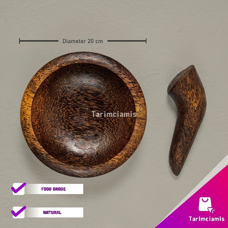 Cobek Kayu Aren 20cm Foodgrade + Ulekan