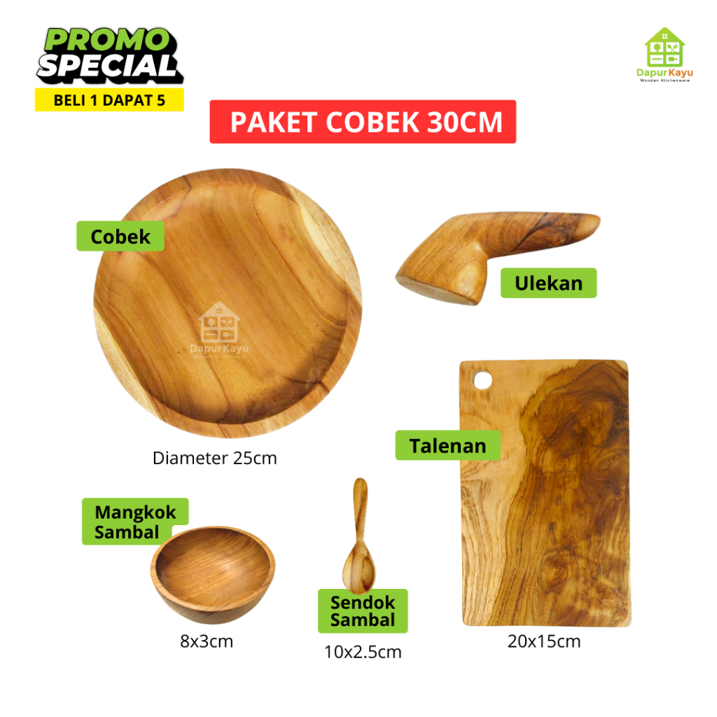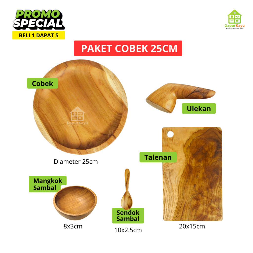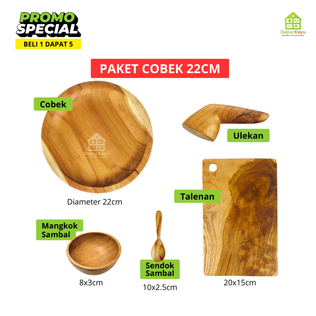 Cobek Kayu Jati Beli 1 Dapat 5 | Tanpa Pernis Finishing Foodgrade