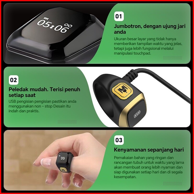 Ready Cincin Bluetooth Pintar Cincin Doa Digital Tahan Air Tampilan Led Penghitung Dapat Dihubungkan Ke Aplikasi 7 Hari