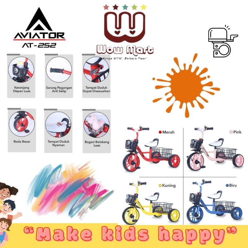 AVIATOR AT 252 TRICYCLE ADA KERANJANG SEPEDA ANAK RODA TIGA