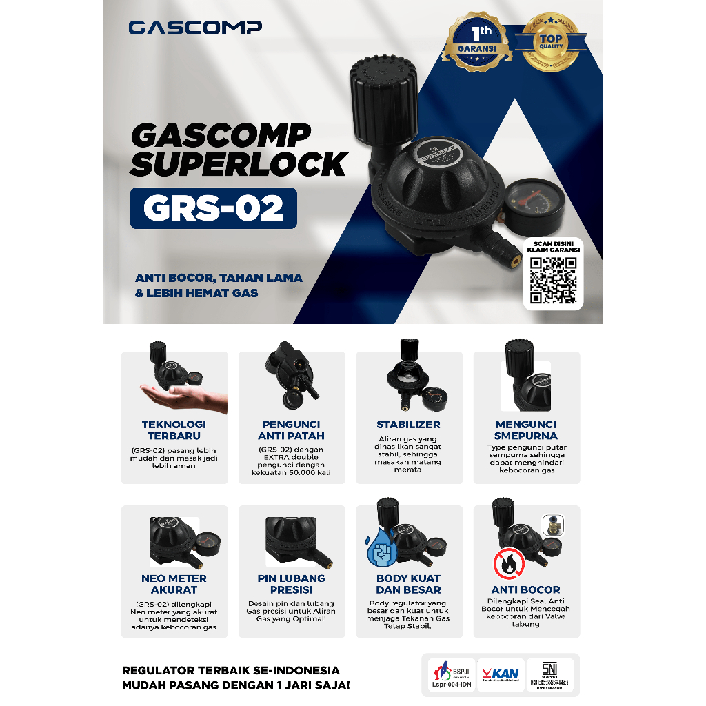 GASCOMP Regulator Meter Superlock Putar (GRS-02) Regulator Gas Superlock Regulator Gas Aman Regulator Gas Anti Bocor Reg
