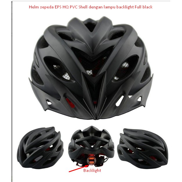 Helm sepeda EPS HQ PVC Shell dengan lampu backlight Full black