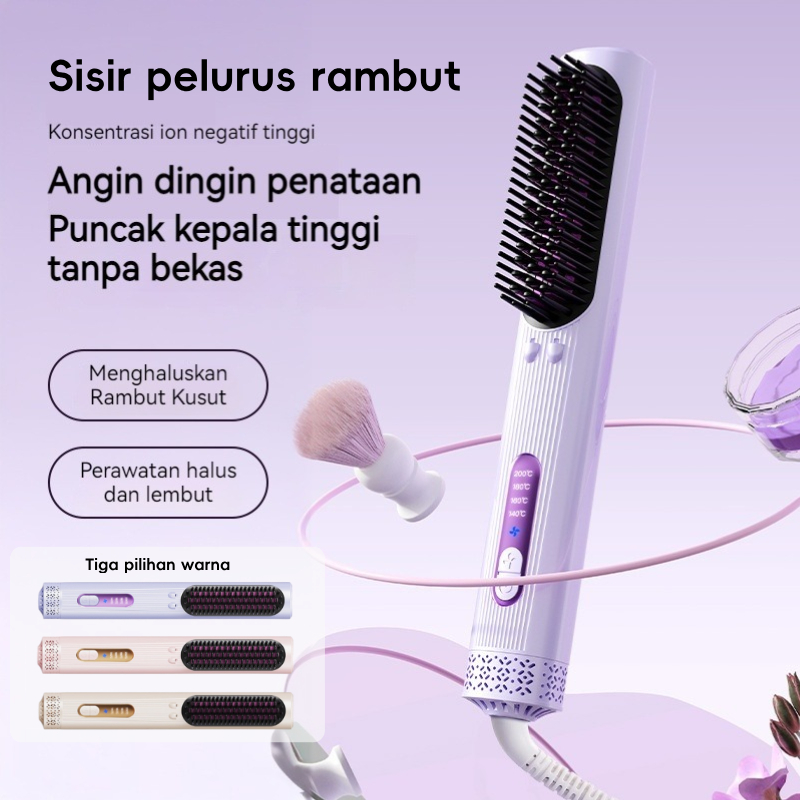 Sisir Catok Rambut Elektrik Tanpa Kabel – Pelurus Rambut Ion Negatif 4 Suhu, Aman & Praktis Dibawa