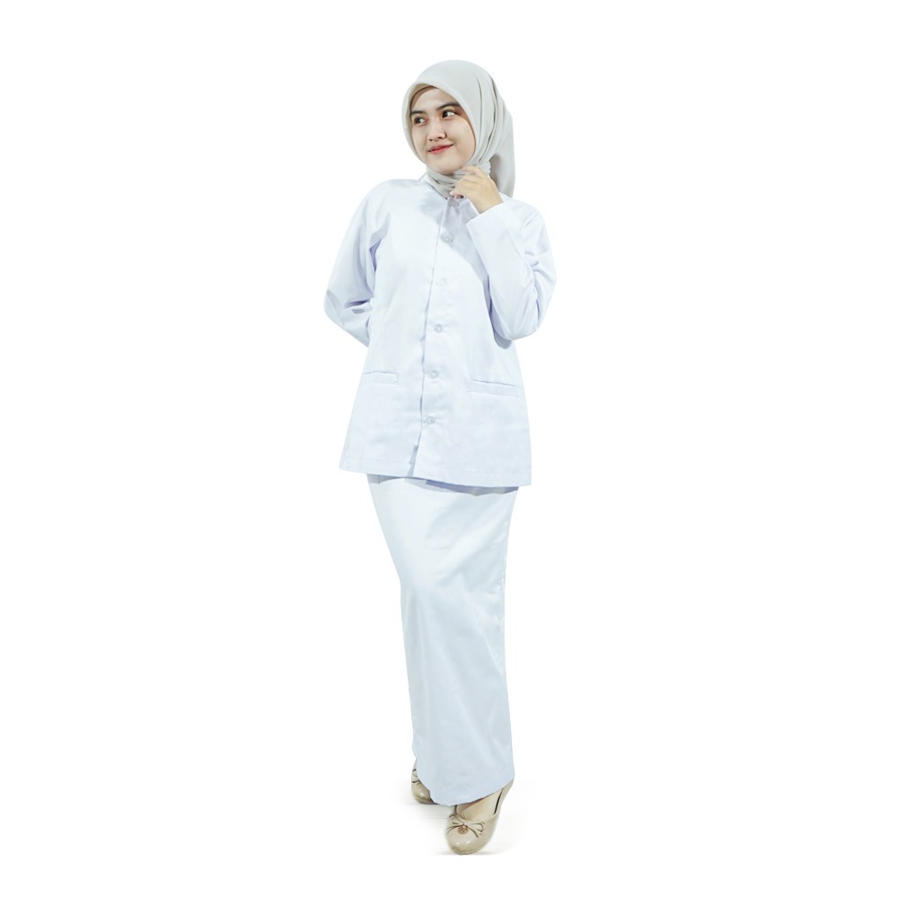 LINCURT - Baju Perawat Putih Set Rok Klinik Rumah Sakit Wanita Lengan Panjang