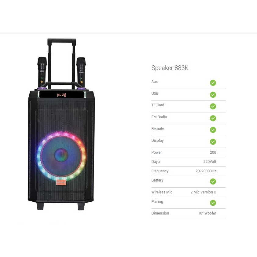 Speaker Bluetooth GMC 883K / Speaker Aktif 10" Portabel dengan Suara Super Bass free 2 MIc