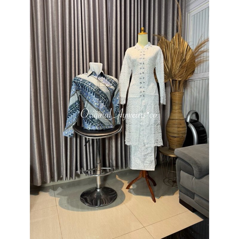 aywears • set couple pasangan kebaya brukat malika putih jumbo dan kemeja batik pasangan