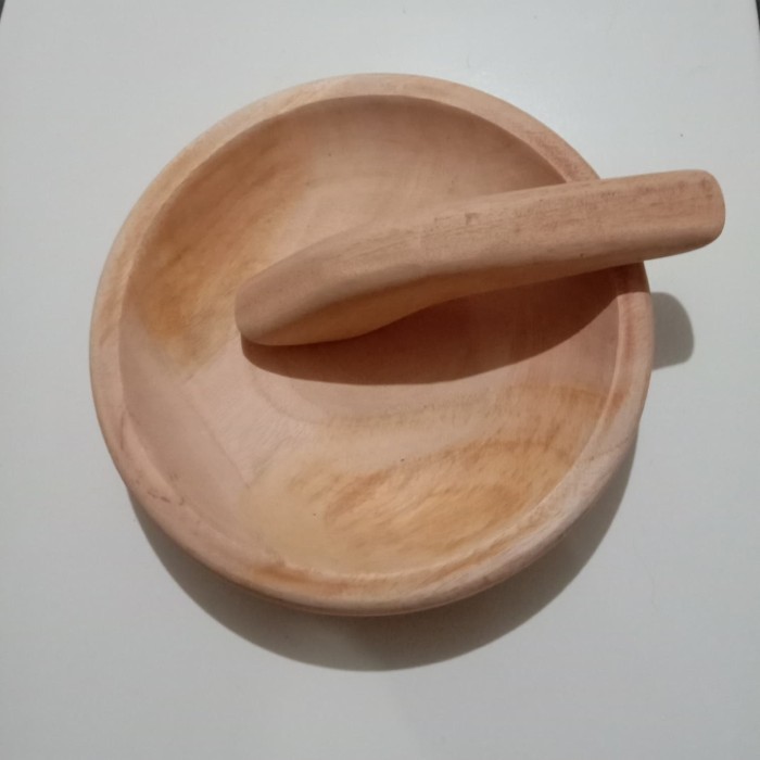 Cobek Kayu Coet Kayu Ukuran16-22 Plus Ulekan