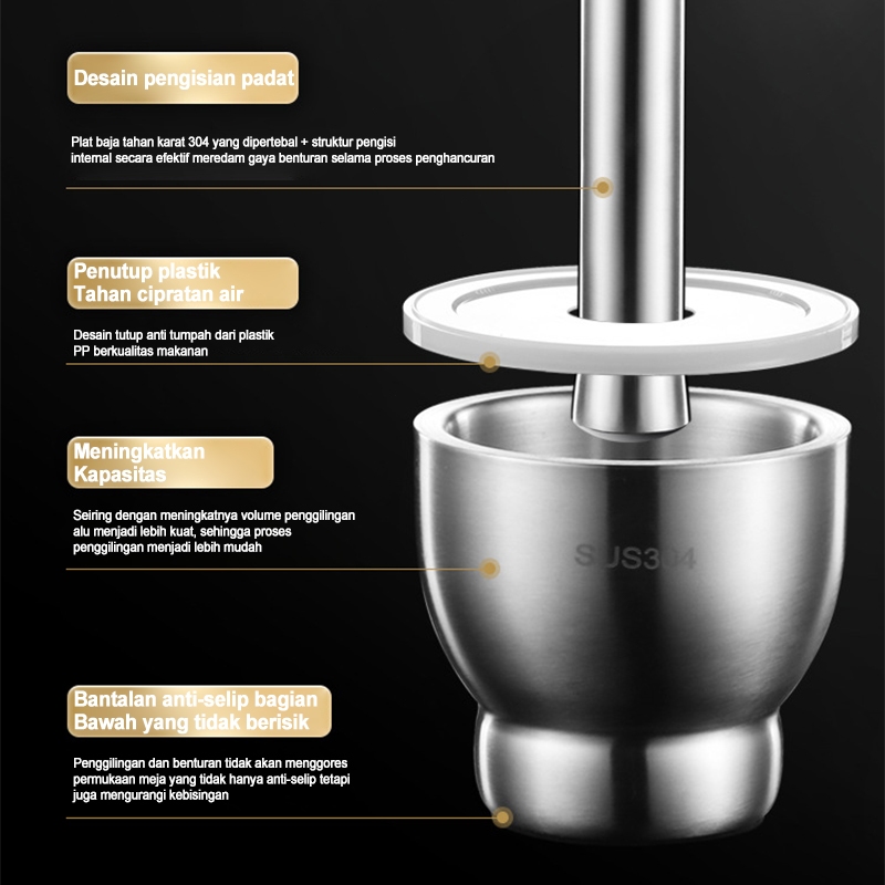 Cobek Stainless/Tumbukan Bumbu Dapur Dengan Tutup/Ulekan Stainless/Mortar Pestle Tumbukan Bumbu Obat Stainless Cobek Ule