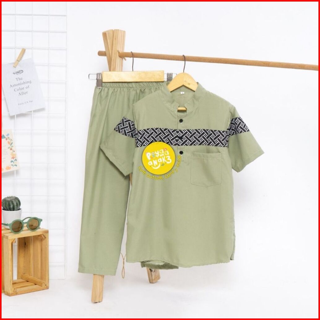 Setelan Koko Kurta Turki Dada Batik Garis Anak Usia 1-10 Tahun Mlxl 81012