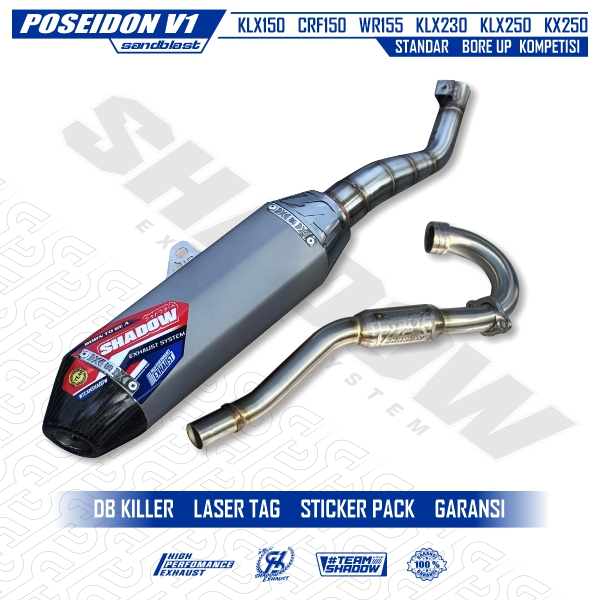 Knalpot CRF150 KLX150 WR155 KLX TIGER KLX 230 Type Poseidon Sanblast Shadow Exhaust System