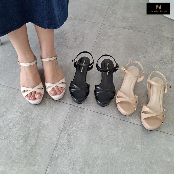 NICHOLAS EDISON WEDGE IDA WEDGES TALI SILANG OPEN TOE - BLACK, 36
