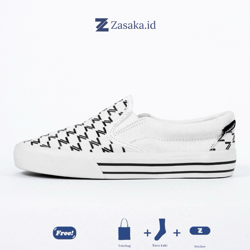 ZASAKA Sepatu Slip On Pria Original Alesha Z White Sepatu Casual Unisex Stylish Ringan