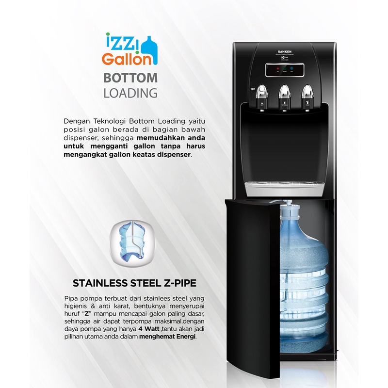 Dispenser panas dingin Galon Bawah Sanken HWD-C523IC Hitam Bottom Loading