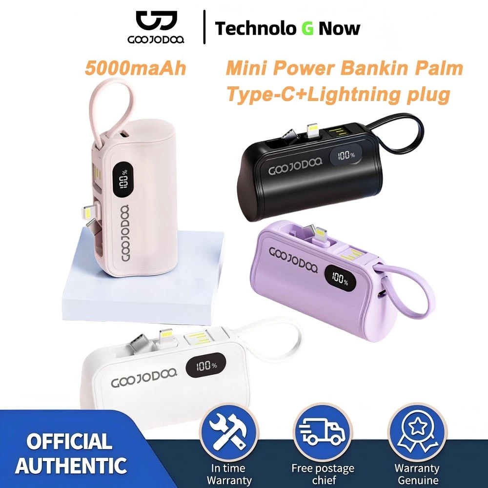 5000mah Mini Powerbank Dengan colokan ganda Lightning + Tipe C for iphone Android Phone Built in Cable Small Portable