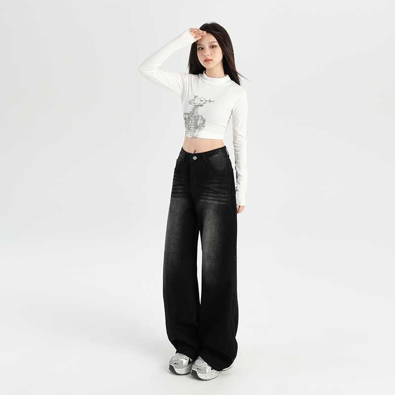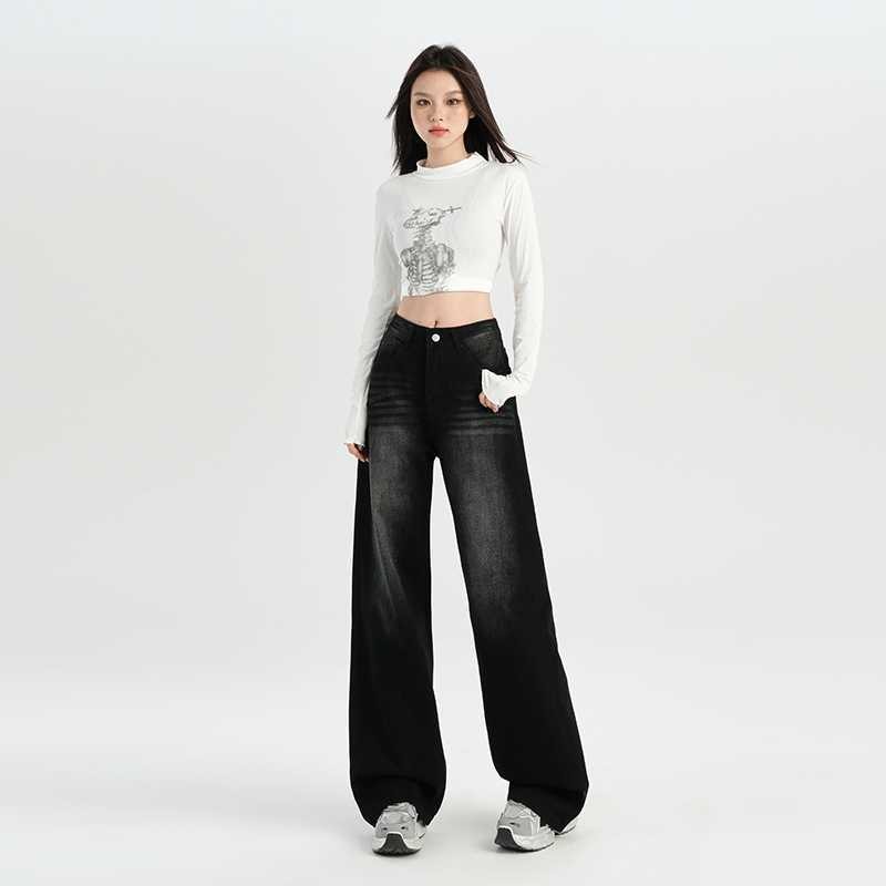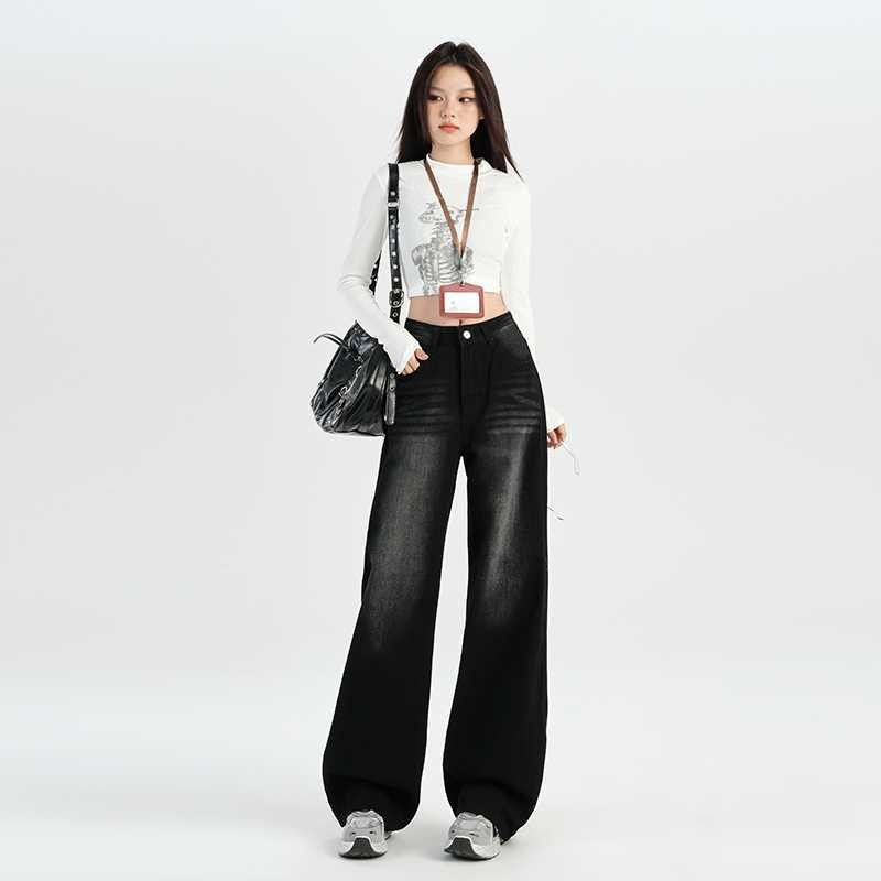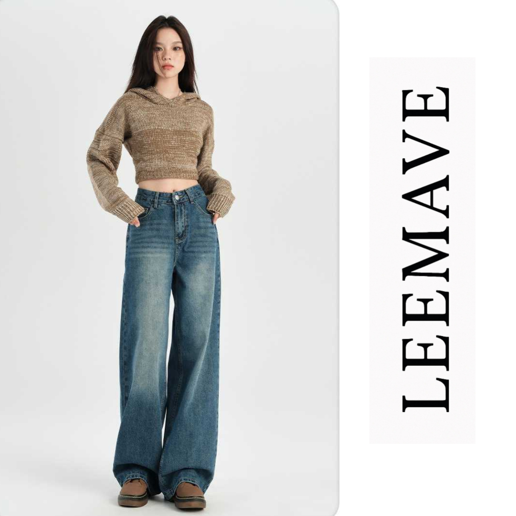 Leemave - UNISEX Jeans Celana Gombrong American Retro Wide Leg Jeans Women's High Waist Loose Slimming Draping Pants