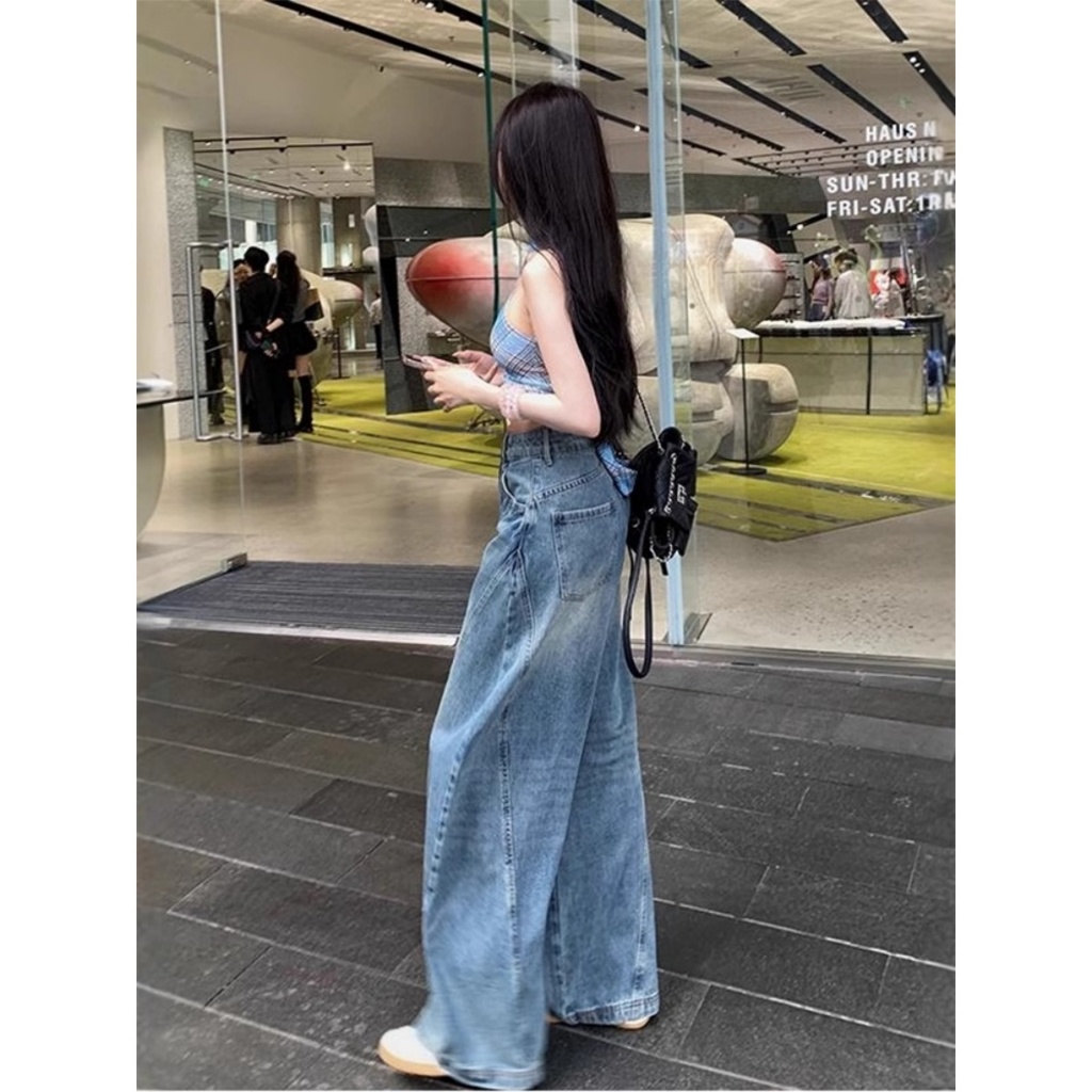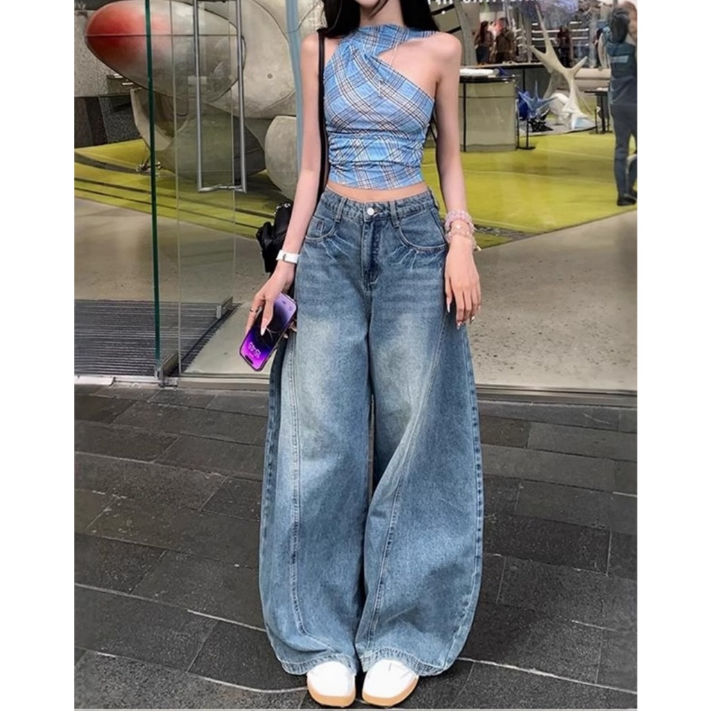 lulu jeans-Biru Retro Highwaist koult Celana Jeans Wanita baggy baggy Jeans Korean--Celana panjang yang besar--Cocok unt
