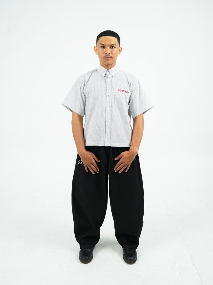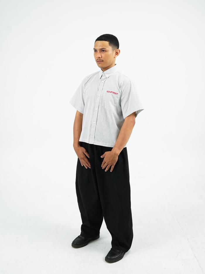 Shirt Boxy Stripe - Geld Importaint white black Kemeja Pendek Stripe Pria / Wanita Unisex Garis