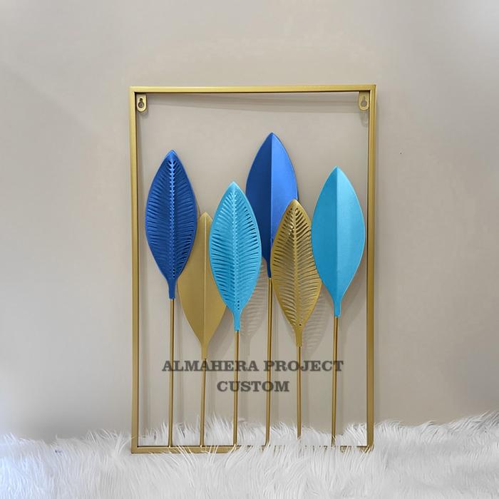 Wall Decor Hiasan Dinding Ukuran 40x60 frame metal gold leaf blu Hanging Decor