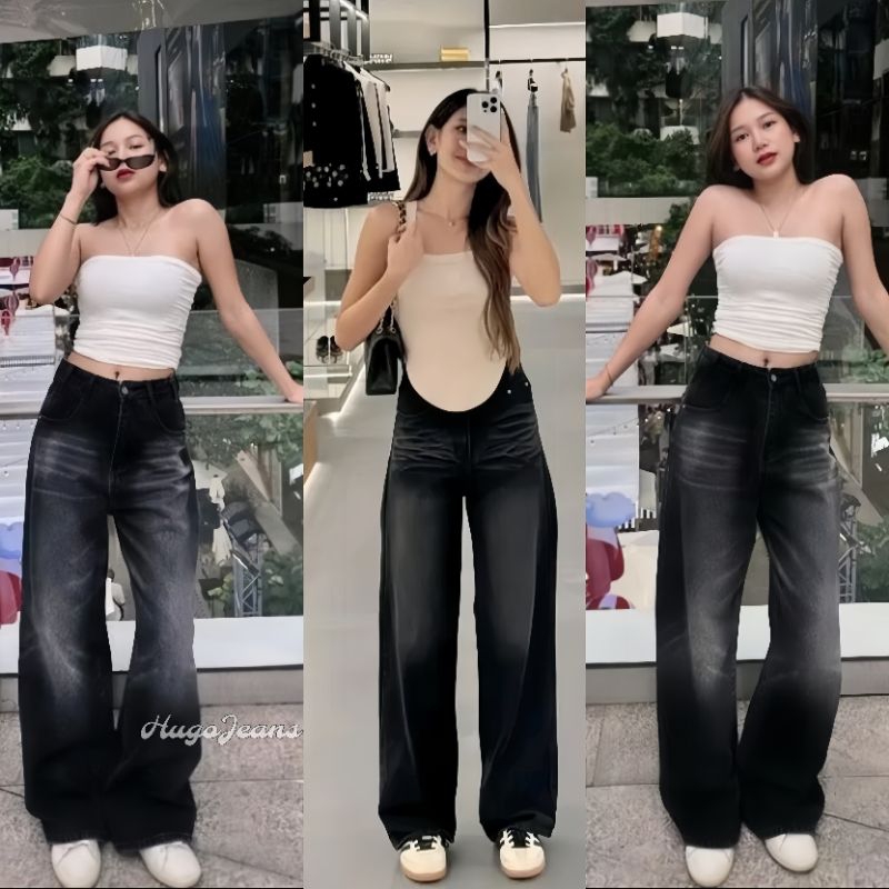[ UNISEX ] Celana Jeans Whisker Gombrong Highwaist Baggy Pants Hangover Wid Leg Oversize Korean Style Terlaris!!