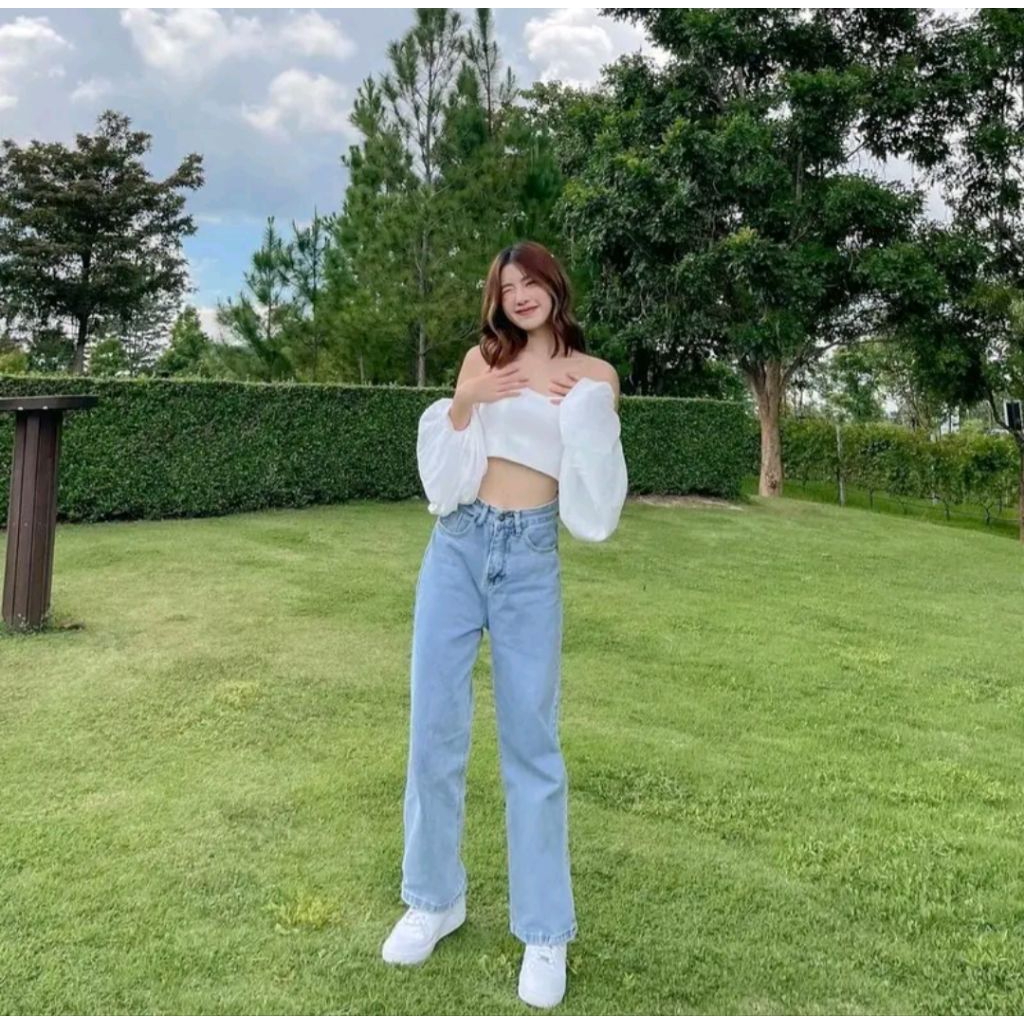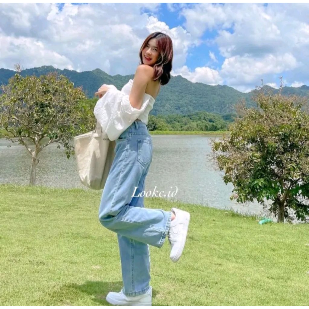 Celana Jeans Retro Wanita Celana Kulot Hightwaist Wanita Loose Terlaris