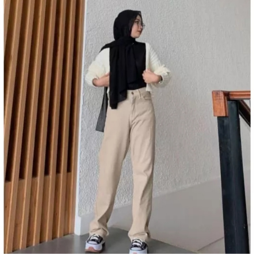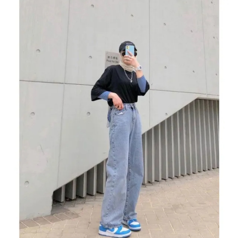 Baggy Jeans - Celana Retro Jeans Highwaist Loose Korea Style Terbaru
