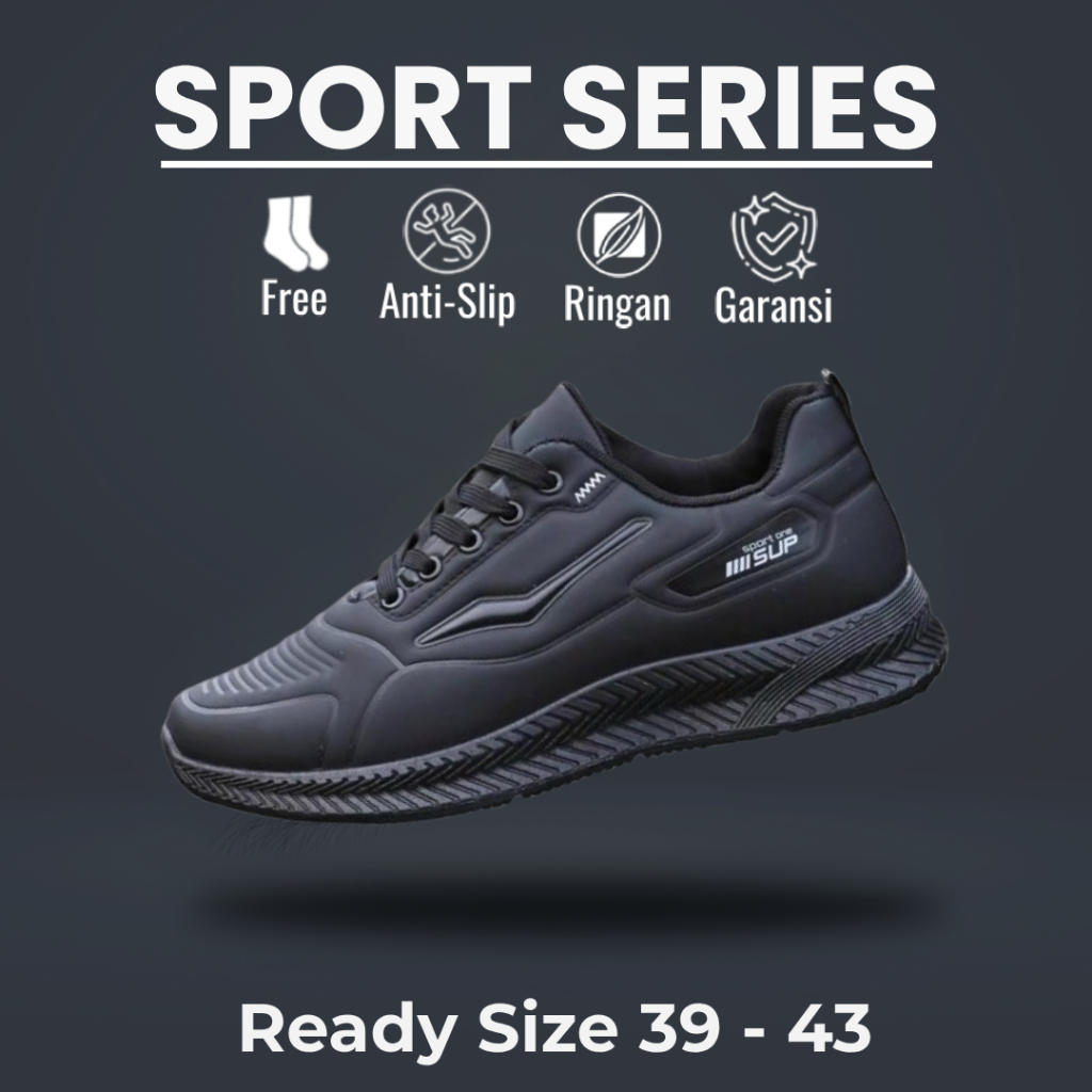 Sepatu Sneakers Sekolah Model Sport Warna Hitam Pria Bisa Buat Running Gym Kasual Ringan Anti Slip Nyaman Dipakai Harian