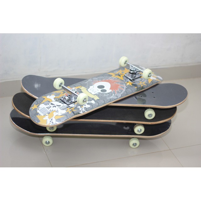 Skateboard maple black skull