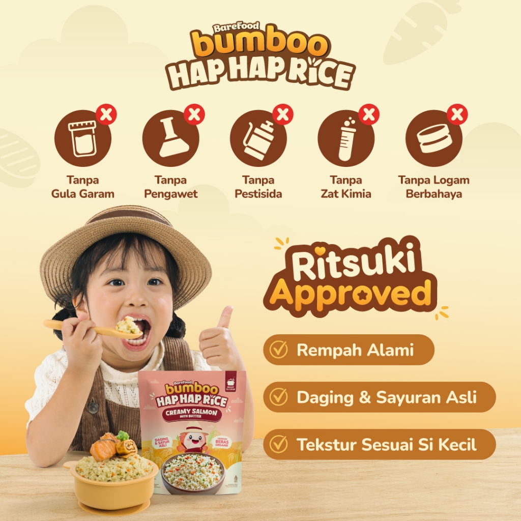 BUMBOO Hap Hap Rice - 100% Beras Organik Tanpa Pestisida - Double Protein Hewani - Bahan Alami - Tanpa Pengawet