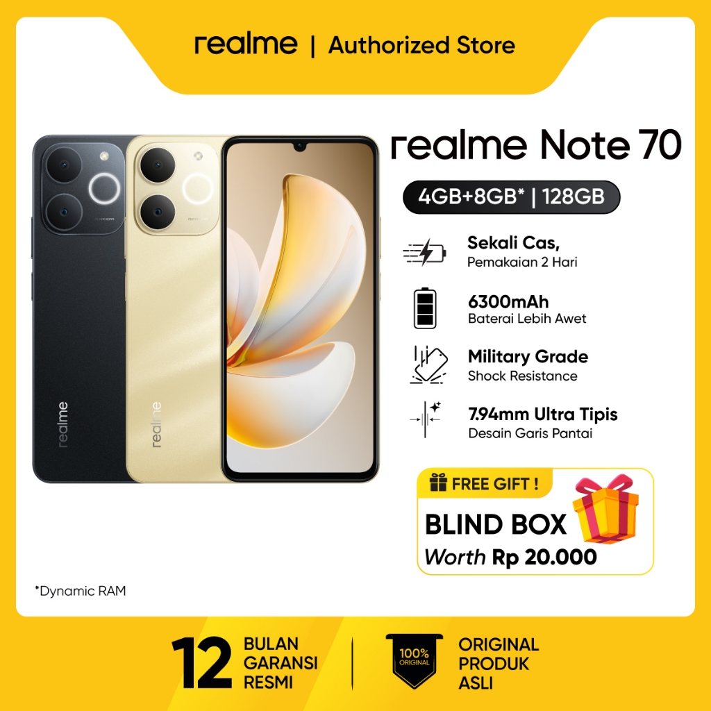 realme Note 70 4+64GB / 4+128GB (6300mAh Battery | Military Grade Shock Resistance | 7.94mm ultra tipis | Pulse Light)
