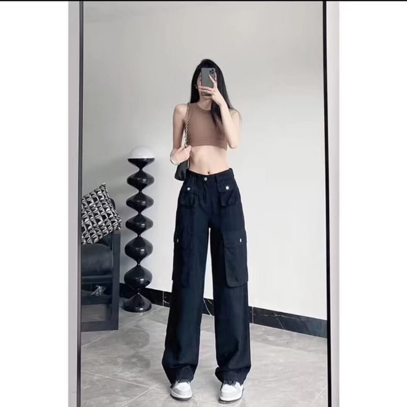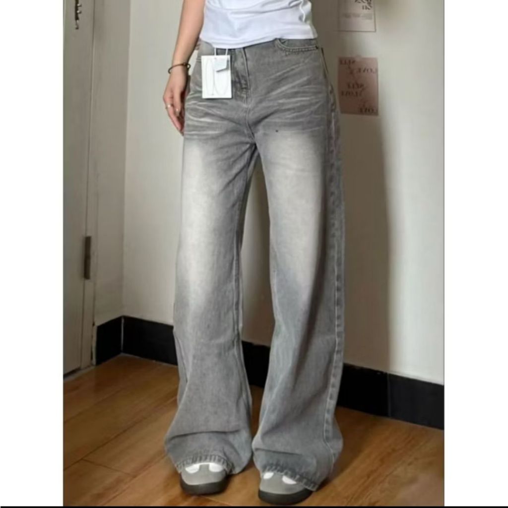 OZY STORE - Biru retro Highwaist Celana Jeans Wanita Loose Kekinian