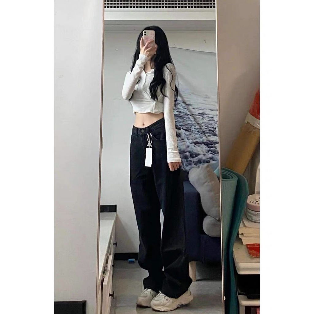 Celana jeans high waist wanita korean style Jeans baggy pants Serbaguna Kasual Biru Retro