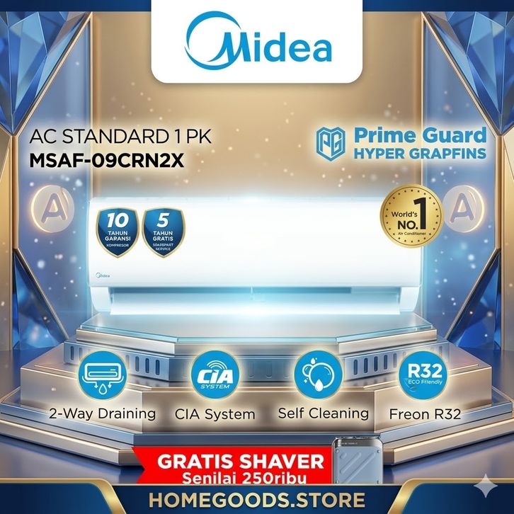 Midea AC Standard 1 2 PK R32 Series MSAF-09CRN2X Prime Guard Hyper Graphins air portable sharp gree daikin panasonic